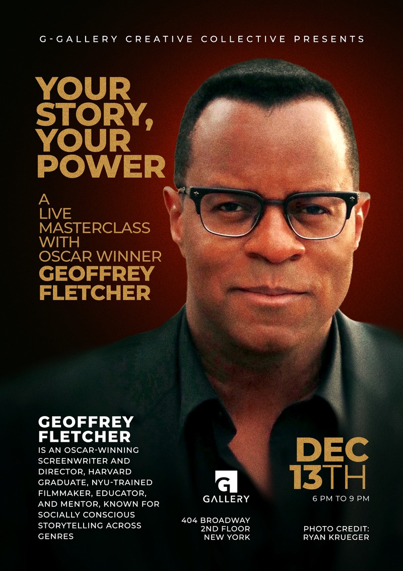 Experience an inspiring evening of creativity, empowerment, and community with “Your Story, Your Power,” a masterclass led by OSCAR®-winning screenwriter and director Geoffrey Fletcher. This exclusive event is part of the G-Gallery Creative Collective, founded by curator Vilma Hodo, whose vision is to cultivate meaningful artistic experiences and amplify diverse creative voices that nurture community and truthful connections.