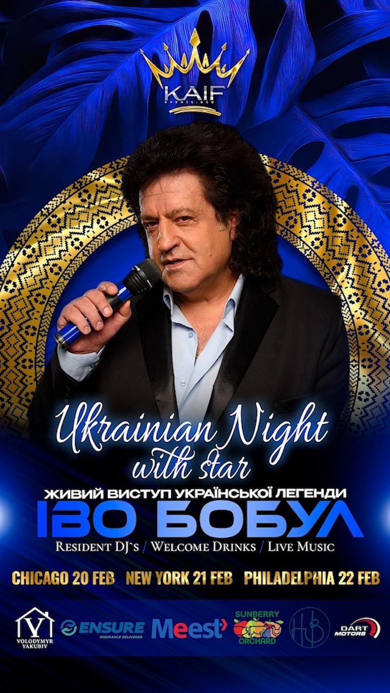 Kaif.events.usa invites you to a charity Ukrainian Party in Philadelphia featuring special guest Ivo Bobul.